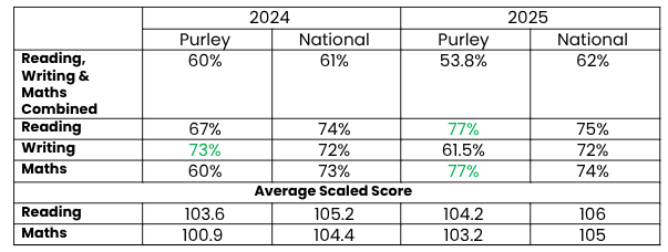 Below is a summary of our most KS2 results from July 2025, with the previous year and national figures for comparison: